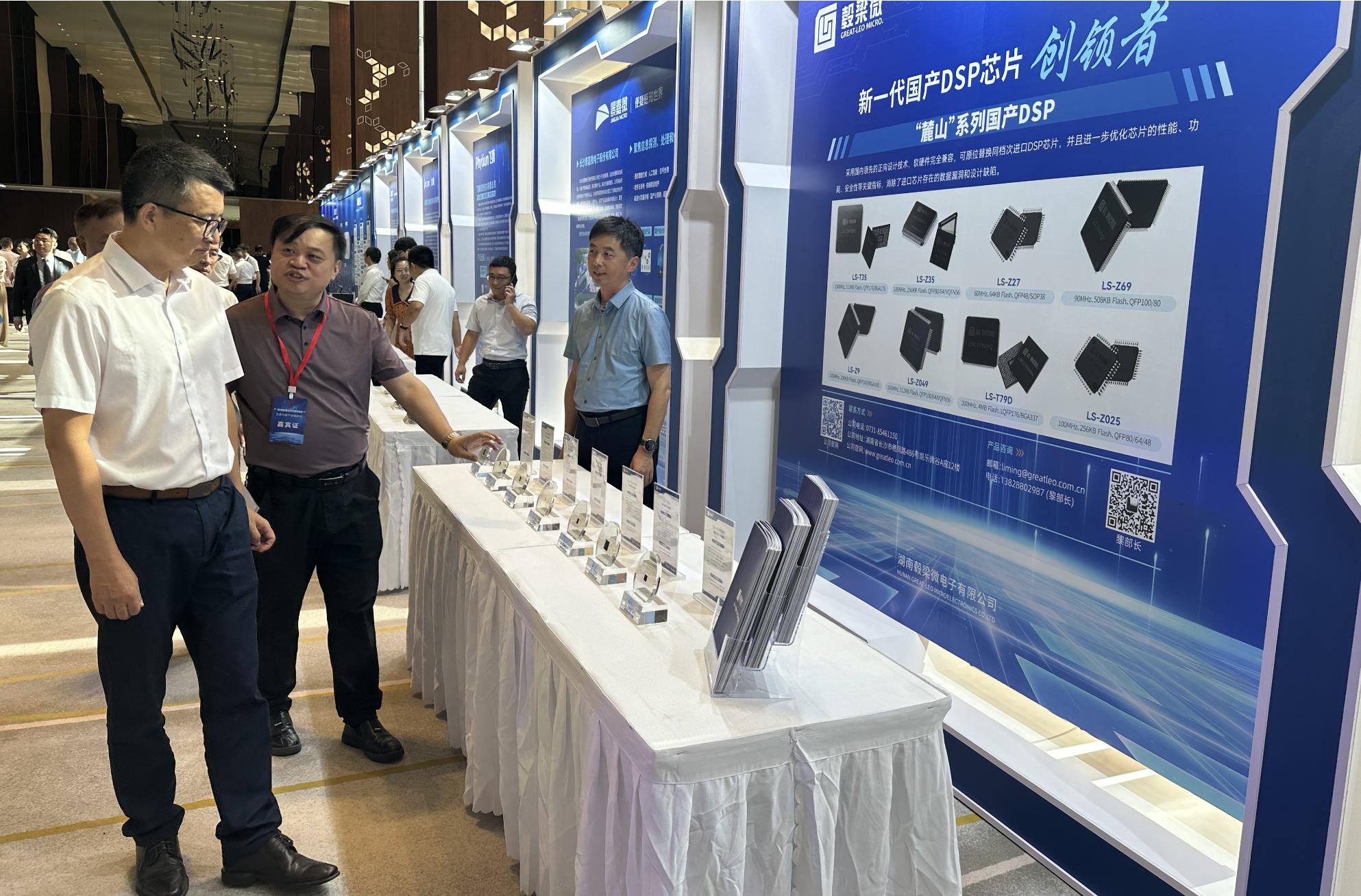毂梁微作为长沙市先进计算产业集群重要企业代表受邀参加了此次大会,并展示了包括LS-T35、LS-Z35、LS-Z9、LS-Z27、LS-Z049、LS-T79D、LS-Z69在内的七款国产DSP芯片。工业和信息化部火炬高技术产业开发中心党委书记、主任吕先志驻足毂梁微展台,详细听取了汪东副总经理关于公司在嵌入式微处理器正向兼容设计、全自主国产DSP体系架构等方面的情况汇报。